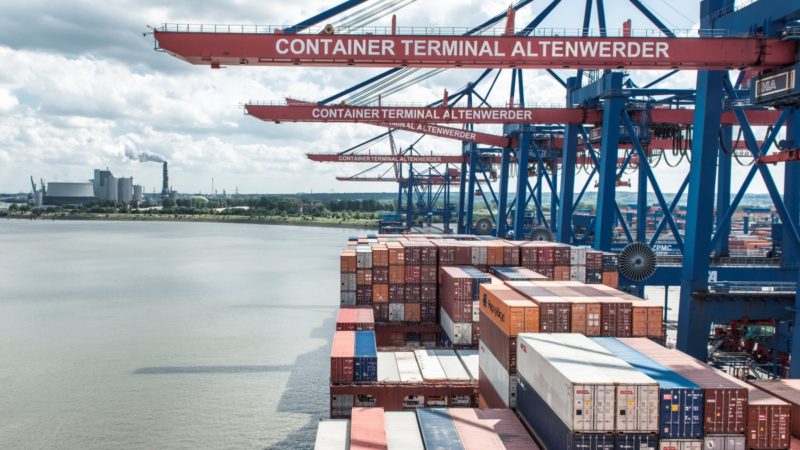 Nach 7 Jahren Schifffahrtskrise in Deutschland hoffen die Reeder auf mehr Unterstützung der Politik und eine leichte wirtschaftliche Entspannung: Im Containerhafen von Altenwerder wird die Beladung der Schiffe über Kräne gesteuert. (Foto: Achim Multhaupt)