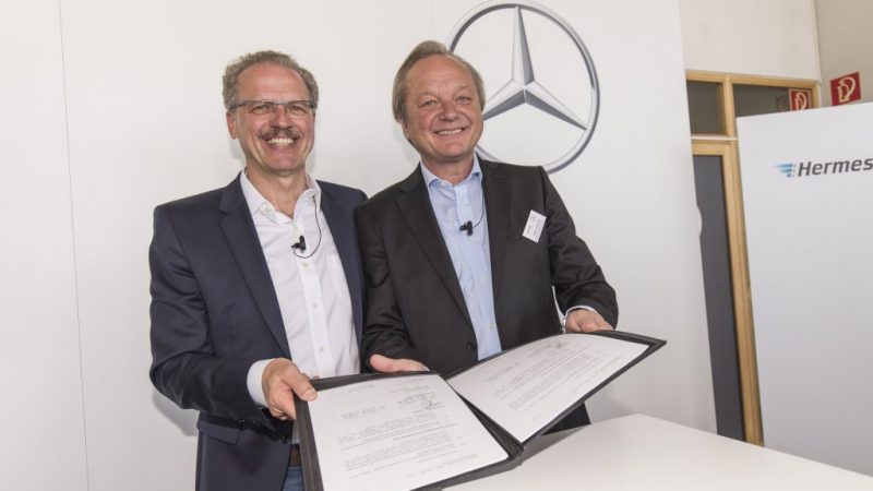 Mercedes-Benz Vans and Hermes concluded a strategic partnership agreement to develop technologies and services for the vehicle fleet operated by the retail and logistics service provider. With this, the strategic partnership announced in March was made official. Volker Mornhinweg, head of Mercedes-Benz Vans, and Hanjo Schneider, executive board member of the Otto Group in the services segment and chairman of the supervisory board of Hermes Europe GmbH, signed the agreement at a Mercedes-Benz branch in Hamburg. Starting in 2018, Hermes Germany will begin to put into service 1,500 Mercedes-Benz electric parcel delivery vans.